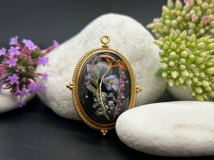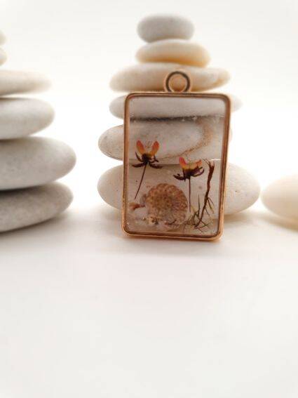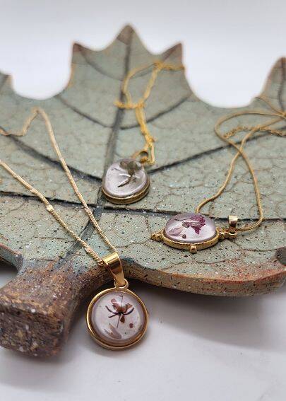 Het type en de vorm van sieraden zijn verschillend: hangers met bedel, hanger zonder bedel, met een zilveren ketting of een lederen koord. Soms is bladgoud gebruikt voor extra glans.